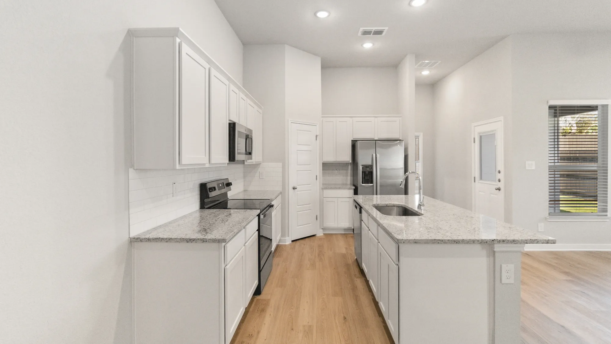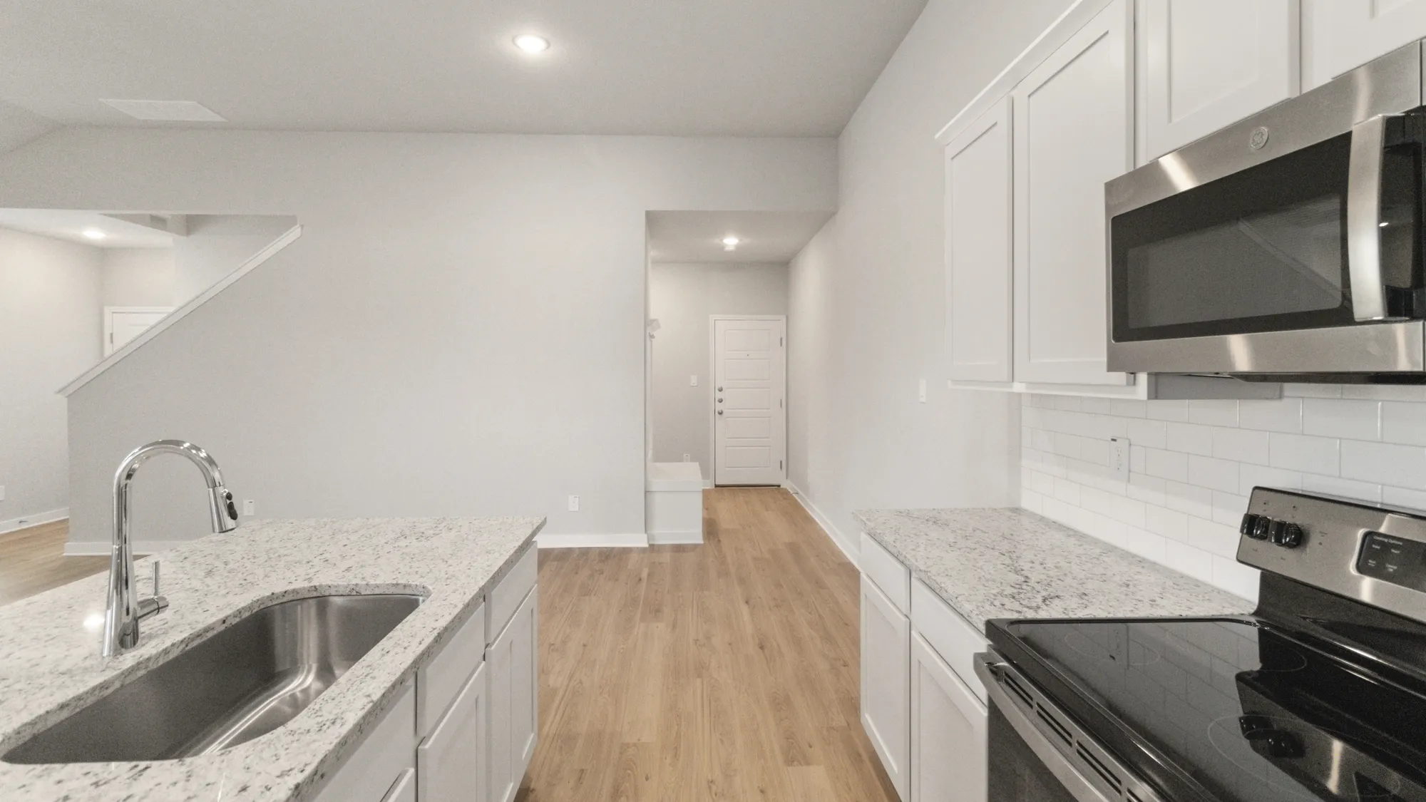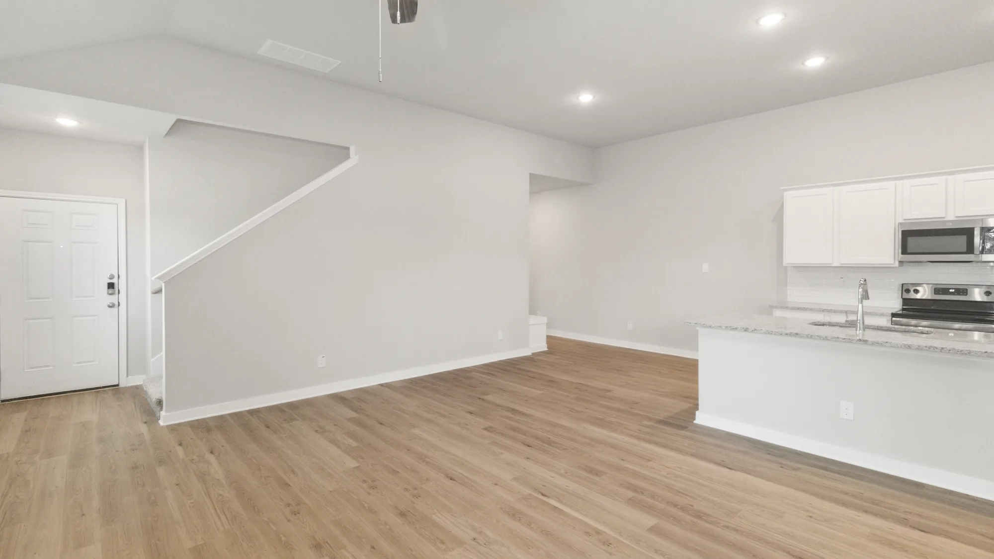 3,600 sq ft total; 1,800 sq ft (per duplex side) includes 4 bedrooms, 3 baths. Master/ensuite, bedroom 2, full guest bath, laundry room, mudroom, large living area, dining, central kitchen with island seating space, all located downstairs. Bedrooms 3 & 4 and bathroom 3 are upstairs. Each unit comes with 2 car garage, covered patio, large backyard, full irritation, privacy fence, and front door smart keypad deadbolt. Some communities have solar panels, EV charging stations (per plan only).